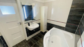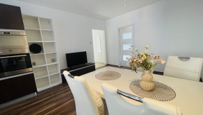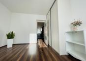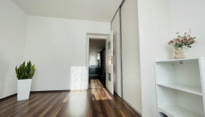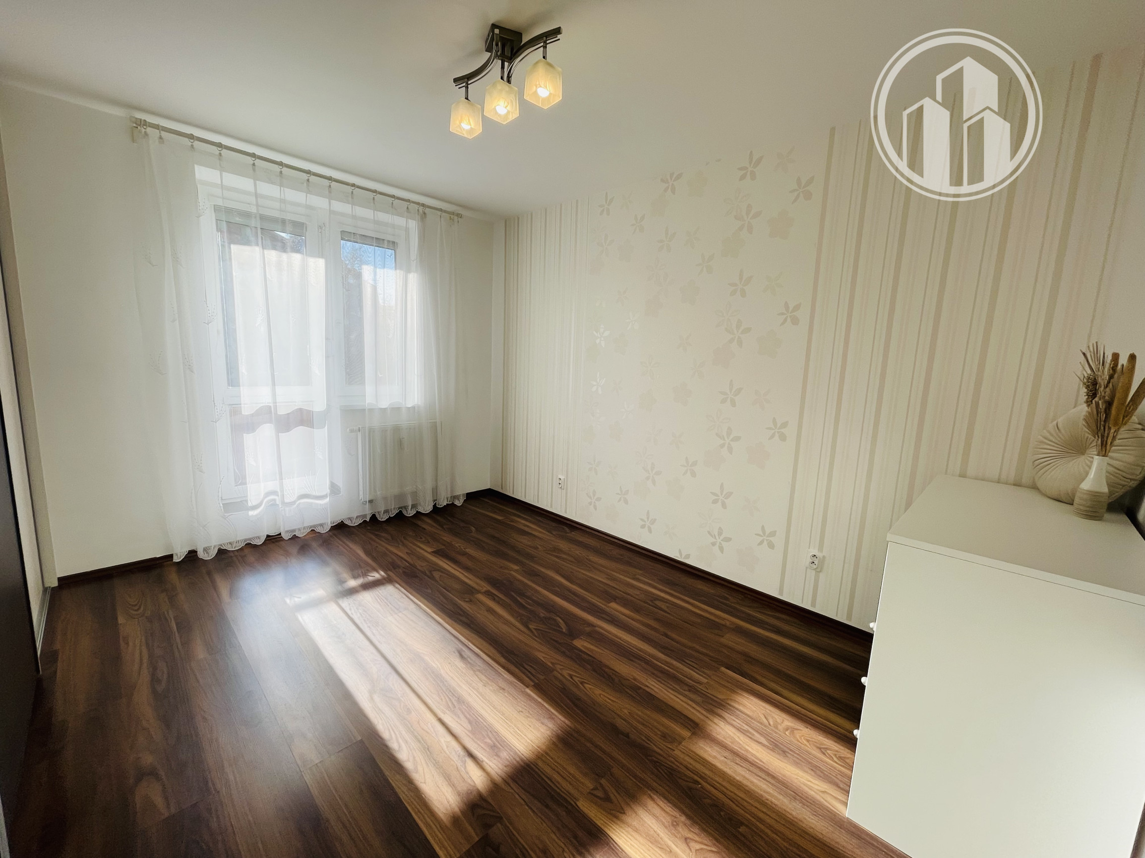 Tento slnečný trojizbový byt je veľmi prakticky a dispozične dobre riešený. Zo vstupnej chodby sa dostaneme do priestrannej kúpeľne s vaňou, ktorej veľkou výhodou je okno. Toaleta v byte je samostatná. Po ľavej strane sa nachádza samostatná izba, vhodná ako spáľna, táto izba disponuje aj balkónom. Z chodby sa dostaneme do priestrannej obývacej izby prepojenej s kuchyňou, ktorá je vybavená vstavanými spotrebičmi. V kuchyni sa nachádza aj klimatizačná jednotka. Z obývacej izby je vstup do detskej izby, v ktorej sa nachádza vstavaná skriňa s množstvom úložného priestoru. Byt je veľmi príjemne presvetlený, orientovaný na východ a západ. V oboch izbách sú vonkajšie rolety a vstupné dvere sú bezpečnostné. Bytový dom bol kolaudovaný v roku 2010. Okná sú plastové. .